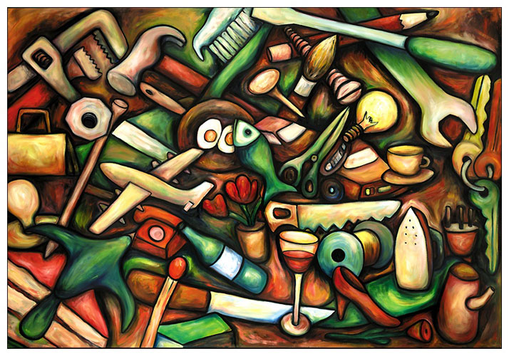 The image used in my title bar is a snippet from an excellent painting by a talented Australian artist, Mr. Brett Curzon. The painting is titled ‘Bits & Pieces’ and to me it reflects the myriad of thoughts, concepts, questions and realities that engulf my mind every day.